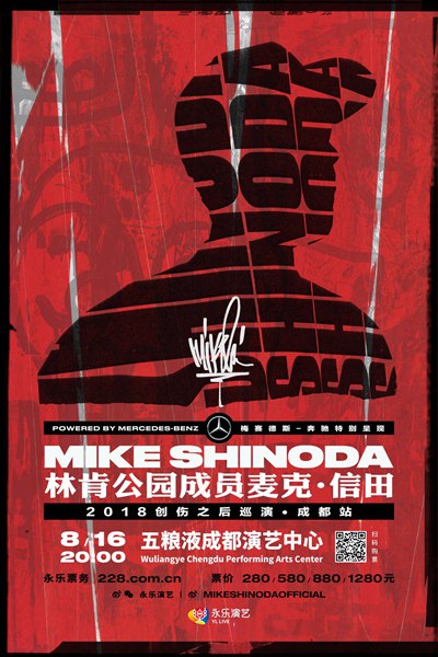 在疗伤之后,麦克·信田选择了复出和歌迷们一起分享他这段时间的创作,也是希望歌迷朋友们不要再为他们而过分担心。如果你对林肯公园音乐里富有冲击力的硬核重音念念不忘,如果你曾被麦克·信田音乐里的真诚情感所打动,那么这次的“林肯公园成员麦克·信田2018创伤之后巡回演唱会”,不仅有你期待的强势经典曲目,更会加入一系列全新元素与惊喜。作为麦克·信田本次巡演的冠名赞助商,梅赛德斯-奔驰在演唱会期间将与麦克 · 信田展开全面的合作,并将持续为中国的乐迷与梅赛德斯-奔驰的车主提供更加丰富的活动与体验。梅赛德斯-奔驰车主将有机会亲临“林肯公园成员麦克·信田2018创伤之后巡回演唱会”-成都站现场,更有幸运的客人将有机会与麦克·信田亲密接触,共享一场不同凡响的音乐盛宴。