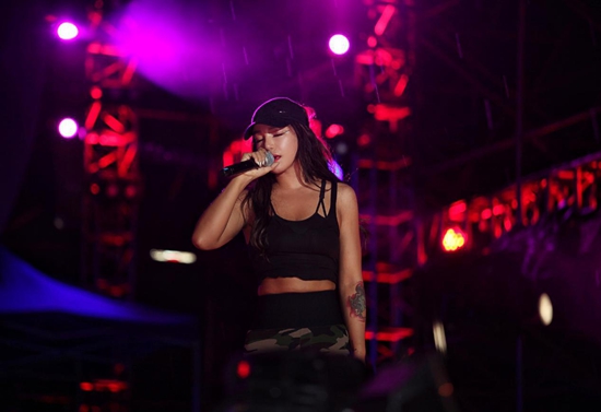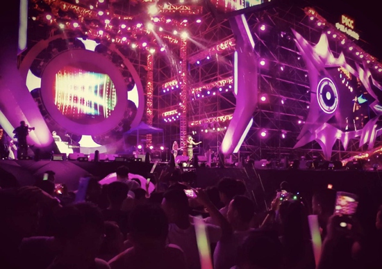 活动当晚大雨倾盆,但是这并没有影响到江映蓉的表演热情,一连献唱6首劲爆歌曲,并带来性感的舞蹈表演。其中,改编的经典歌曲《大花轿》,更是引来全场合唱,台下粉丝笑称:没想到这首歌被她一改编,倒变得老少皆宜了。本来打伞看表演的观众,在江映蓉的带动下,纷纷收起雨伞,跟着音乐节奏摇摆。江映蓉在台上担心嘱咐:一定要保护好身体。表演结束还来到观众席,为大家发放特地准备的糖果!暖心十足。
