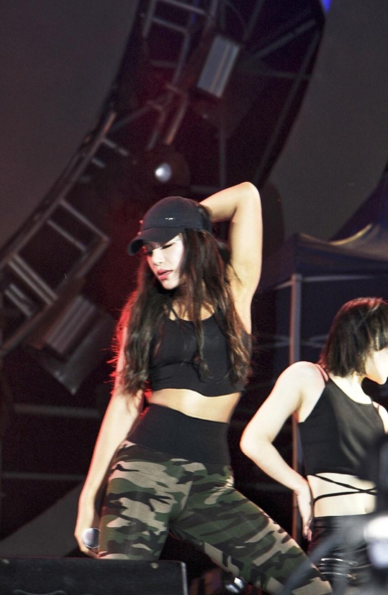 7月14日,江映蓉现身成都某知名音乐节,一身简约时尚的运动搭配,结合其健美匀称的好身材,一出场就引来全场尖叫,并且以现场改编的当地方言顺口溜作为开场秀,掀起当晚的第一波热潮。