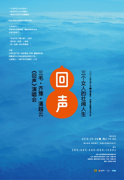 1985年,我们听齐豫、潘越云将三毛的半生故事唱成史诗般的《回声》,2018年9月8日在武汉,三毛·齐豫·潘越云《回声》巡回演唱会将唱响三个女人的壮阔人生。让我们回忆共同的青春,重返属于我们的年代。
