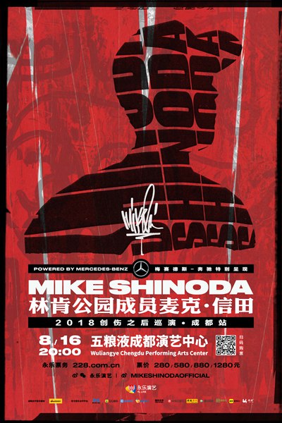 作为麦克·信田本次巡演的冠名赞助商,梅赛德斯-奔驰在演唱会期间将与麦克 · 信田展开全面的合作,并将持续为中国的乐迷与梅赛德斯-奔驰的车主提供更加丰富的活动与体验。梅赛德斯-奔驰车主将有机会亲临“林肯公园成员麦克·信田2018创伤之后巡回演唱会”-成都站现场,更有幸运的客人将有机会与麦克·信田亲密接触,共享一场不同凡响的音乐盛宴。