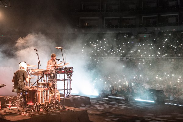 晚上8点的五粮液成都演艺中心,舞台上蓝色灯光亮起,全场观众起立欢呼,共同期盼着麦克的出现。伴随全场乐迷此起彼伏的欢呼声,麦克带着具有成都特色的熊猫帽子走上舞台,唱响了本次演唱会的第一首歌——Fort Minor的《Welcome》。台下乐迷身着Linkin Park、Mike Shinoda的T恤,在舞台灯光的映衬中全程跟唱副歌部分,整个场子瞬间被点燃。