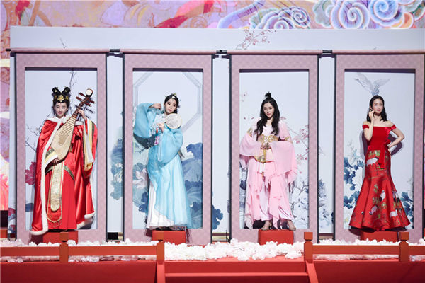 除了有欢乐不断的全新游戏,王丽坤、欧阳娜娜、张天爱、林依晨还在“才艺实验室”环节化身“四大美女”大秀才艺。现场,“昭君”王丽坤跳了一段难度颇高的古典蹈;“貂蝉”欧阳娜娜以甜美的嗓音带来了一首《但愿人长久》;“西施”张天爱则以一段异域风情的舞蹈征服观众;而压轴出场的“杨贵妃”林依晨则走心地唱了一首《清平调》。无缝连接的惊艳才艺收获了全场的欢呼和掌声。